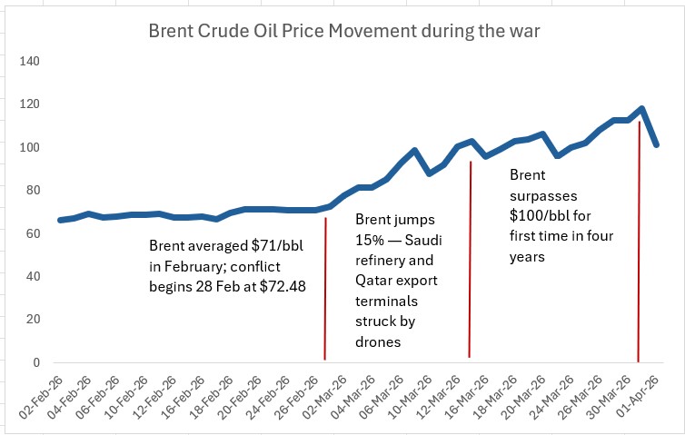 Fig 1: Brent crude oil price movement since 28 February 2026. Source: World Bank, 2026
