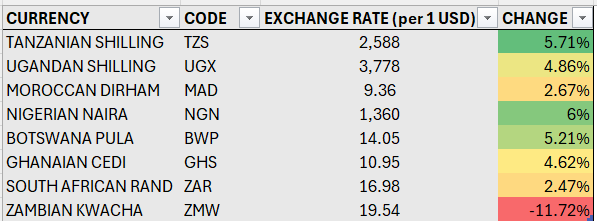 The Dar es Salaam Stock Exchange delivered a 40.65% year-to-date return in local currency making it Africa’s top-performing exchange by that measure. The Tanzanian shilling strengthened 5.71% against the dollar over the quarter. Tanzania is quietly one of the continent’s most interesting investment stories right now.