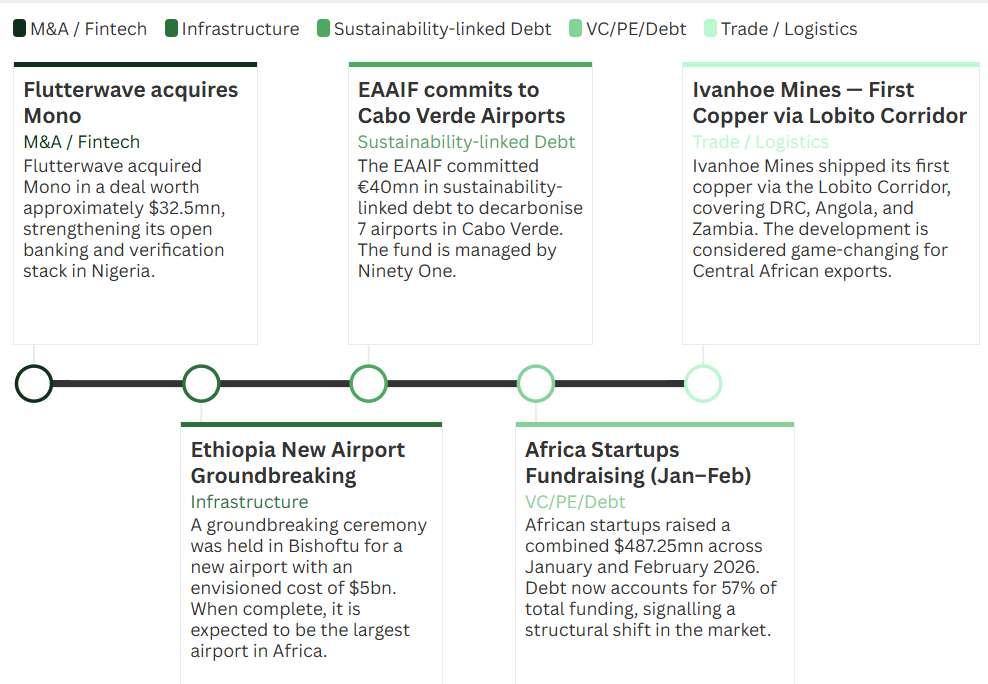 Key Takeaway: The deals getting done in Africa in 2026 are increasingly in infrastructure, healthcare, fintech, and energy, not just extractives. The Lobito Corridor shipment in particular is a landmark moment for regional integration and export capacity.