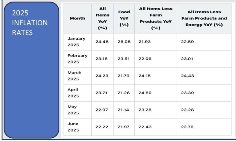 The period from January to June 2025 was marked by significant inflationary pressures in Nigeria, with year-on-year (YoY) rates consistently above 22%. While the initial months showed a downward trend in headline inflation, core inflation remained persistent, suggesting deeply entrenched price drivers.