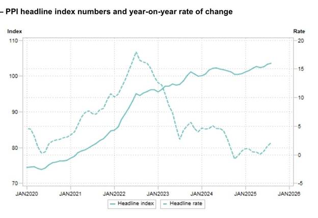 The report showed that the Agriculture, Forestry, and Fishing sector saw a significant drop in its annual PPI, falling to a five-month low of 3.0% in August from 6.5% in July. This decline was primarily driven by lower prices for crops and horticulture (-5.2%), with cereals and other crops (-7.5%) and milk and eggs (-4%) showing notable decreases.